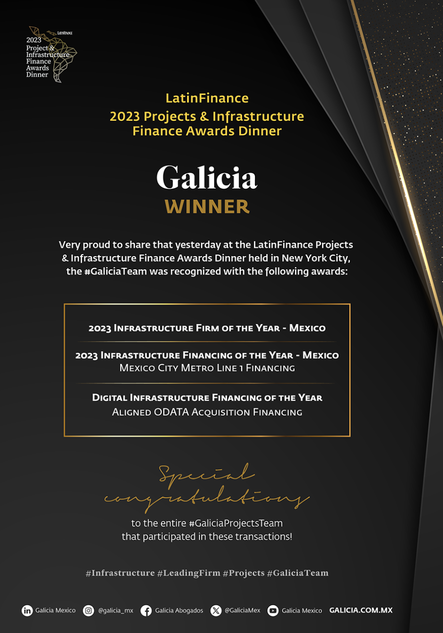 Copyright © Galicia Abogados, S.C. All rights reserved. The contents and publications of this website are protected by the laws and international treaties on copyright in force in Mexico and abroad, in favor of Galicia Abogados, S.C., and third-party owners who have duly authorized their publication on this website. The content and materials on this website may be used solely for personal or educational (non-profit, non-commercial) use, without granting any license or right whatsoever. It is strictly prohibited to remove or alter any copyright legend that states the authorship of the material.