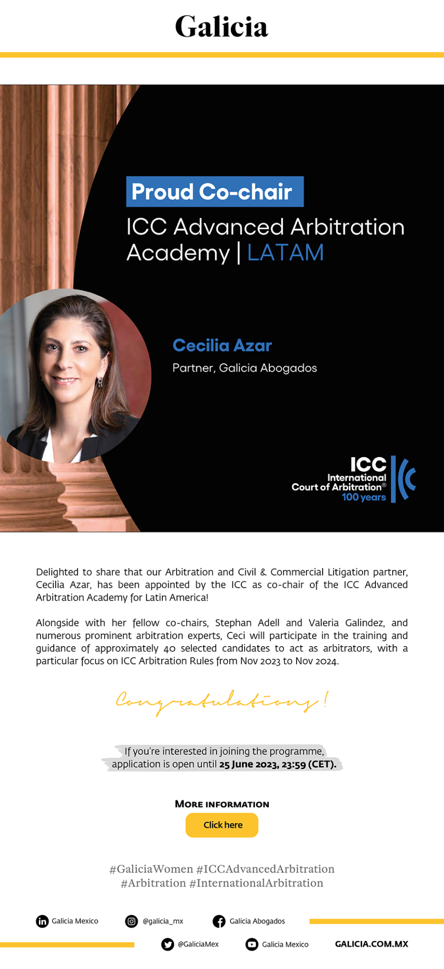 Congratulations to Cecilia Azar | ICC Advanced Arbitration Academy for Latin America