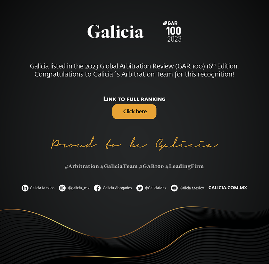 Copyright © Galicia Abogados, S.C. All rights reserved. The contents and publications of this website are protected by the laws and international treaties on copyright in force in Mexico and abroad, in favor of Galicia Abogados, S.C., and third-party owners who have duly authorized their publication on this website. The content and materials on this website may be used solely for personal or educational (non-profit, non-commercial) use, without granting any license or right whatsoever. It is strictly prohibited to remove or alter any copyright legend that states the authorship of the material.