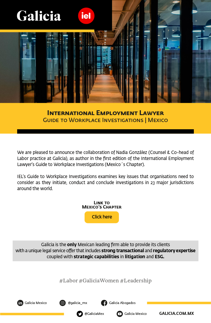 Copyright © Galicia Abogados, S.C. All rights reserved. The contents and publications of this website are protected by the laws and international treaties on copyright in force in Mexico and abroad, in favor of Galicia Abogados, S.C., and third-party owners who have duly authorized their publication on this website. The content and materials on this website may be used solely for personal or educational (non-profit, non-commercial) use, without granting any license or right whatsoever. It is strictly prohibited to remove or alter any copyright legend that states the authorship of the material.