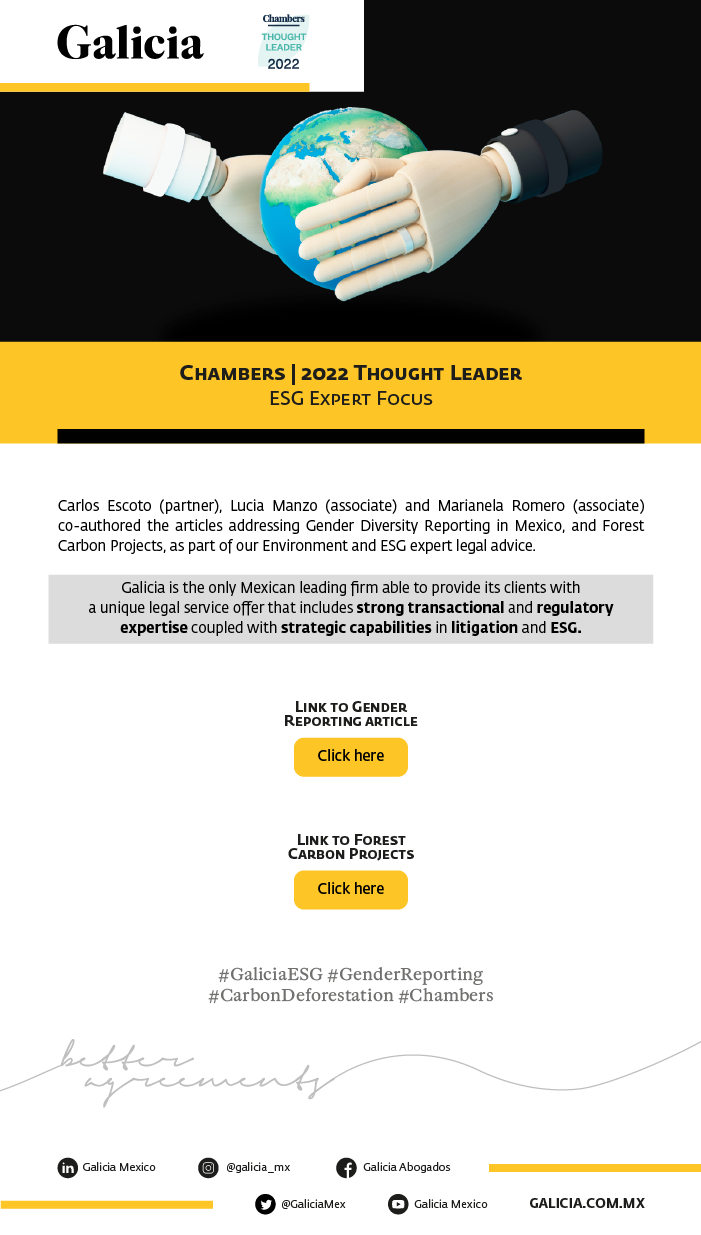 Copyright © Galicia Abogados, S.C. All rights reserved. The contents and publications of this website are protected by the laws and international treaties on copyright in force in Mexico and abroad, in favor of Galicia Abogados, S.C., and third-party owners who have duly authorized their publication on this website. The content and materials on this website may be used solely for personal or educational (non-profit, non-commercial) use, without granting any license or right whatsoever. It is strictly prohibited to remove or alter any copyright legend that states the authorship of the material.