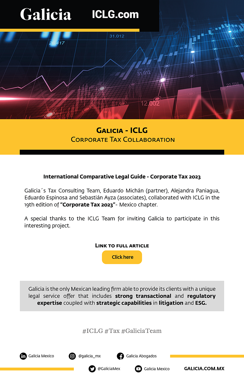 Copyright © Galicia Abogados, S.C. All rights reserved. The contents and publications of this website are protected by the laws and international treaties on copyright in force in Mexico and abroad, in favor of Galicia Abogados, S.C., and third-party owners who have duly authorized their publication on this website. The content and materials on this website may be used solely for personal or educational (non-profit, non-commercial) use, without granting any license or right whatsoever. It is strictly prohibited to remove or alter any copyright legend that states the authorship of the material.