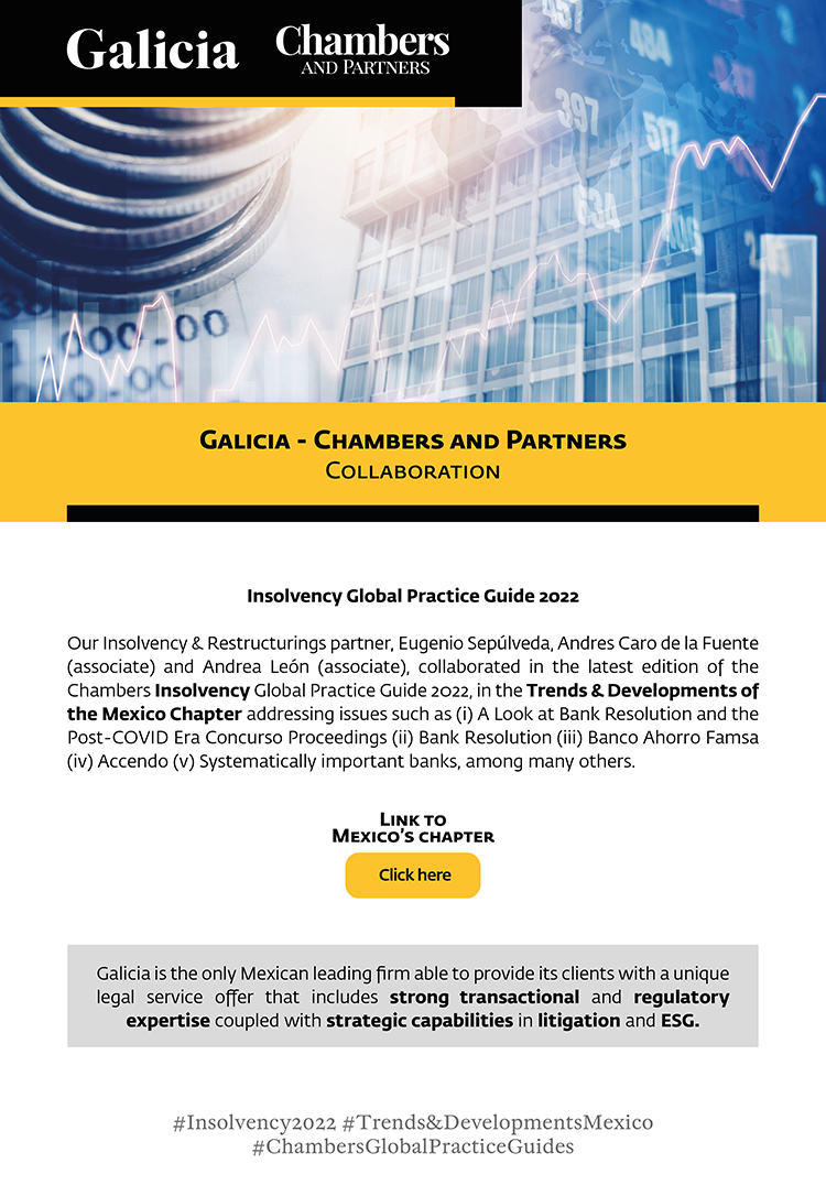 Copyright © Galicia Abogados, S.C. All rights reserved. The contents and publications of this website are protected by the laws and international treaties on copyright in force in Mexico and abroad, in favor of Galicia Abogados, S.C., and third-party owners who have duly authorized their publication on this website. The content and materials on this website may be used solely for personal or educational (non-profit, non-commercial) use, without granting any license or right whatsoever. It is strictly prohibited to remove or alter any copyright legend that states the authorship of the material.