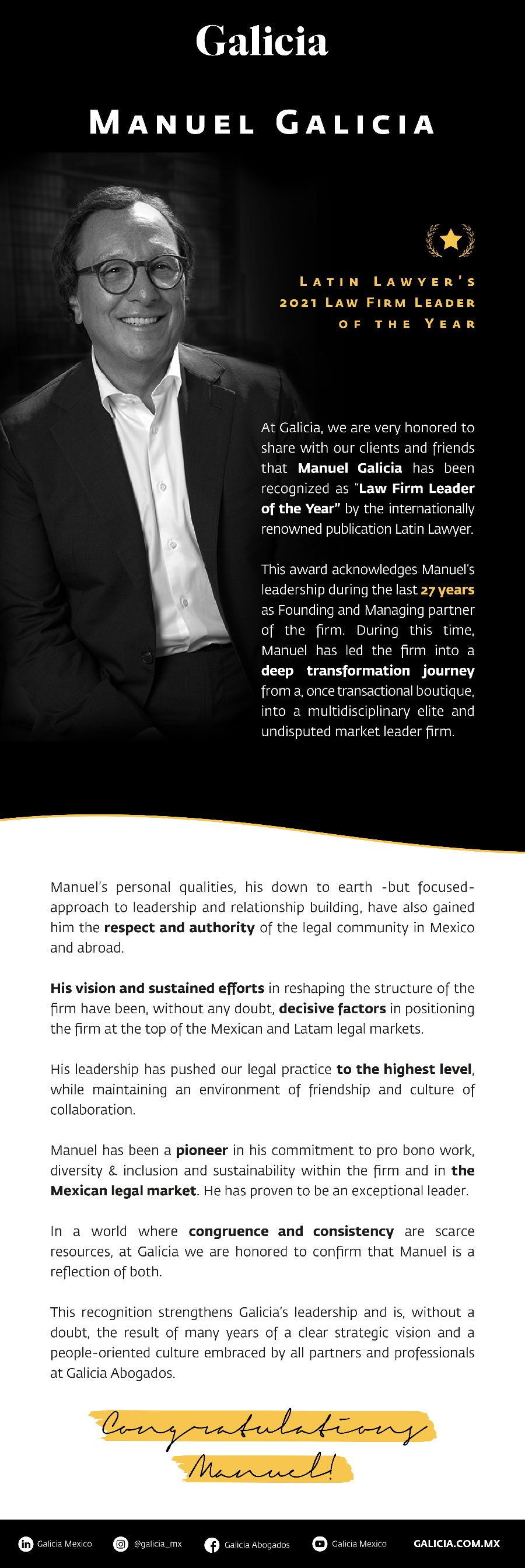Manuel Galicia – Latin Lawyers 2021 Law Firm Leader of the Year