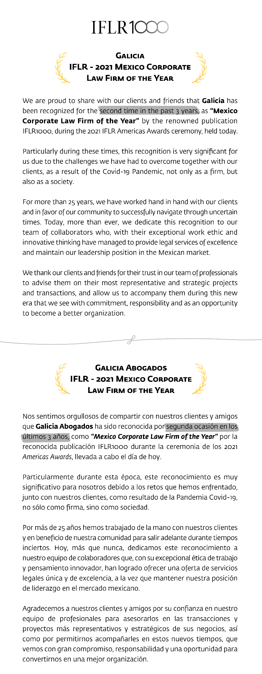 IFLR – 2021 Mexico Corporate Firm of the Year