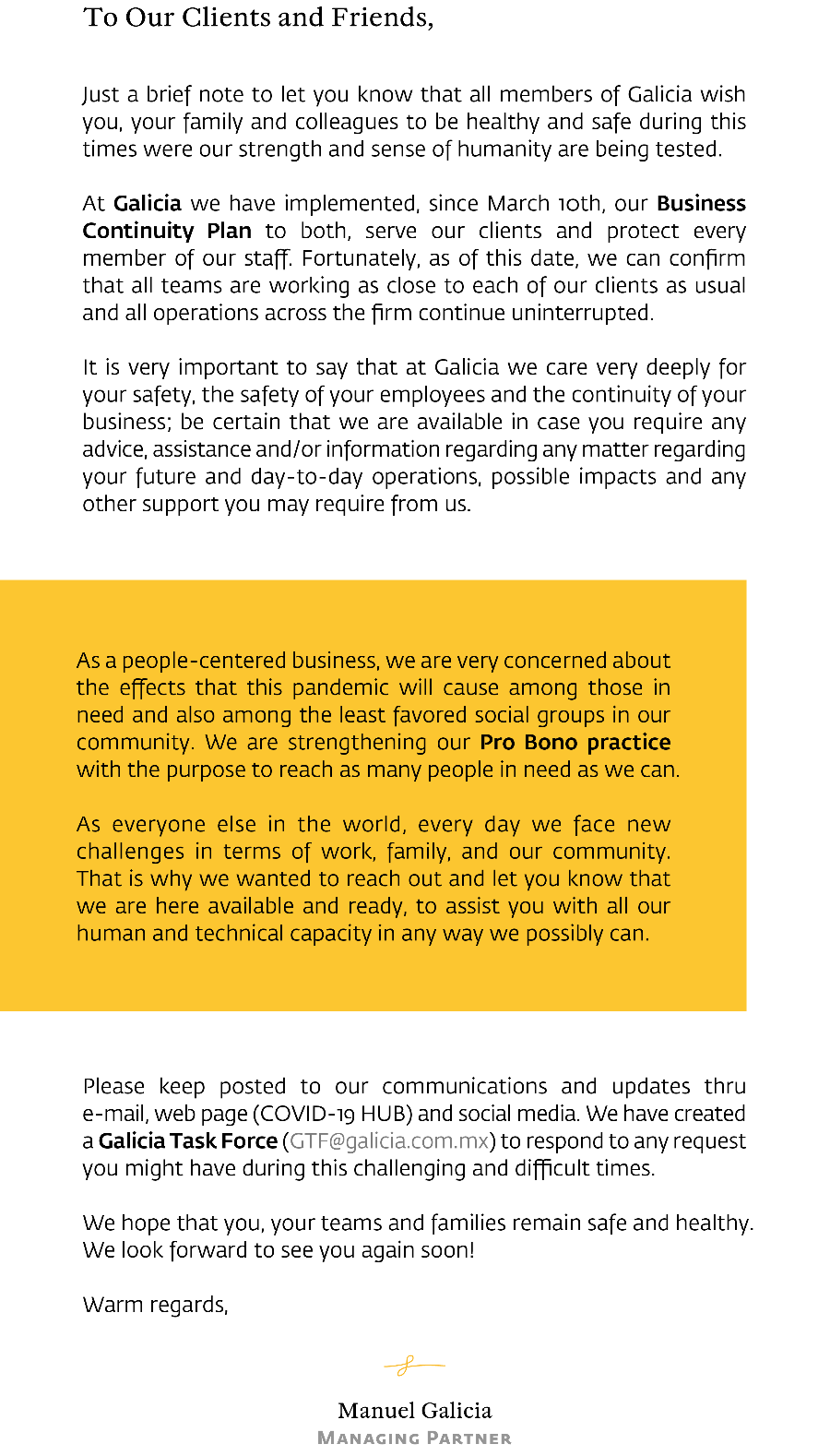 Copyright © Galicia Abogados, S.C. All rights reserved. The contents and publications of this website are protected by the laws and international treaties on copyright in force in Mexico and abroad, in favor of Galicia Abogados, S.C., and third-party owners who have duly authorized their publication on this website. The content and materials on this website may be used solely for personal or educational (non-profit, non-commercial) use, without granting any license or right whatsoever. It is strictly prohibited to remove or alter any copyright legend that states the authorship of the material.