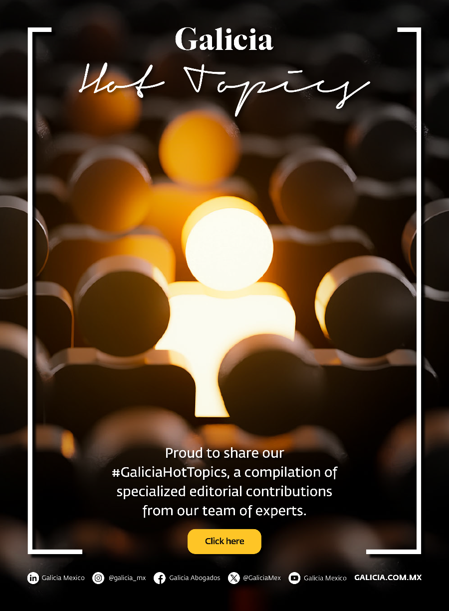 Copyright © Galicia Abogados, S.C. Todos los derechos reservados. Los contenidos y publicaciones de este sitio están protegidos por las leyes y los tratados internacionales en materia de derechos de autor vigentes en México y el extranjero, a favor de Galicia Abogados, S.C. y de terceros titulares que han autorizado debidamente su publicación en este sitio. El contenido y materiales de este sitio podrán ser utilizados exclusivamente para uso personal o educativo (no lucrativo, ni comercial), sin que ello constituya el otorgamiento de licencia o derecho alguno. Queda estrictamente prohibido remover o alterar cualquier leyenda de derechos de autor que manifieste la autoría del material.